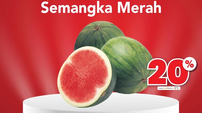 Dalam promo kali ini, buah semangka dibanderol dengan harga murah meriah. Buah semangka bisa dibeli dengan harga promo Rp 990/100 gram.