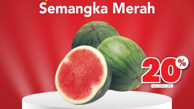 Ingin perbaiki gizi harian dan mulai makan banyak buah di tahun 2024 ini? Makan semangka aja, yuk. Diskon di Transmart dari Rp 990 per 100 gram jadi Rp 792 per 100 gram saja!