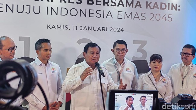 Calon presiden (capres) nomor urut 2, Prabowo Subianto menegaskan bahwa dirinya tidak anti dengan barat. Hal ini disampaikannya dalam Dialog Capres Bersama Kadin, Jumat (12/1/2024).