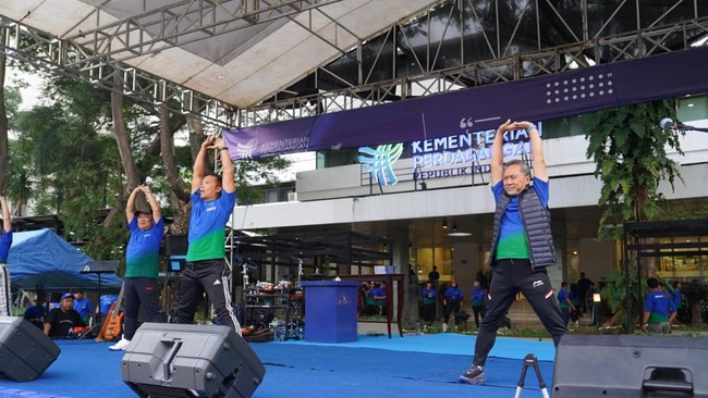 Adapun peluncuran buku yang berlangsung hari ini diawali dengan senam bersama keluarga besar pegawai Kemendag bertema 'Penguatan Sumber Daya Manusia (SDM) Perdagangan Menuju Indonesia Emas tahun 2045'.