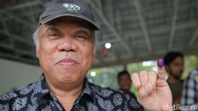 Menteri Pekerjaan Umum dan Perumahan Rakyat (PUPR) Basuki Hadimuljono telah mengunjugi TPS 161 Kota Bekasi untuk menggunakan hak pilihnya. Dalam kesempatan itu ia mengenakan pakaian hitam bermotif batik.
