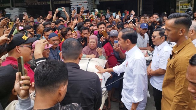Presiden Joko Widodo membantah kelangkaan dan mahalnya harga beras gara-gara bansos. Hal ini dia sampaikan di Pasar Induk Cipinang.