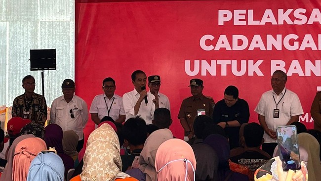 Dalam kesempatan itu Jokowi menyapa warga yang menerima bantuan pangan beras. Dia pun bertanya apakah sudah menerima bantuan pangan dua kali untuk Januari dan Februari 2024.
