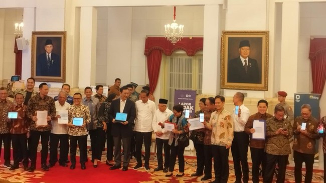Setelah itu, kegiatan dilanjut dengan pelaporan SPT Pajak oleh Jokowi-Ma'ruf dan perwakilan menteri dipandu jajaran Ditjen Pajak Kementerian Keuangan.
