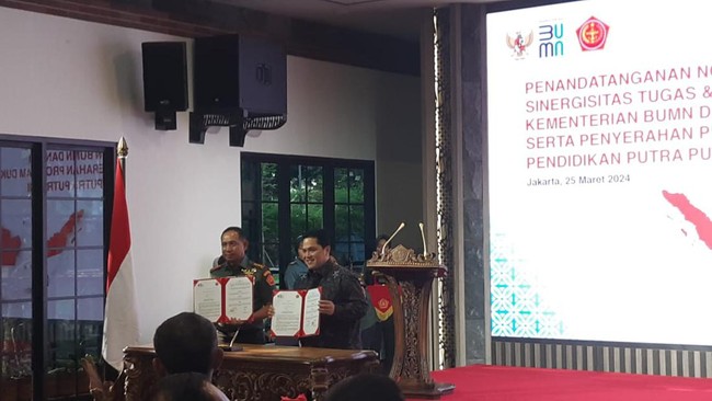 "Dengan adanya sinergi yang kuat antara BUMN dengan TNI kami yakin hal ini bisa mengoptimalkan sumber daya BUMN dan TNI termasuk pengamanan aset BUMN, sehingga tugas dan fungsi masing-masing dapat terselenggara dengan baik," imbuh Erick.