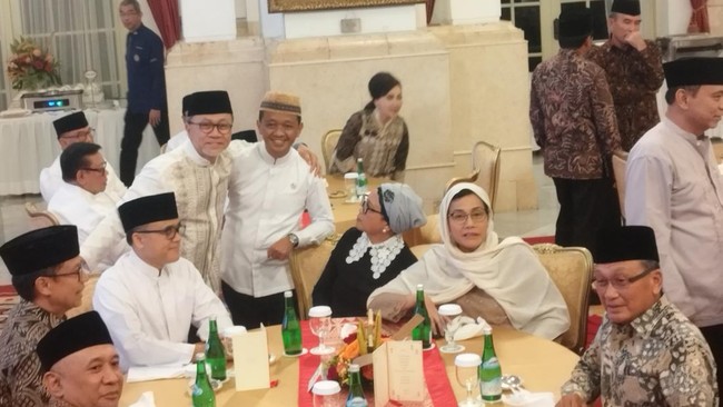 Presiden Joko Widodo (Jokowi) dan para jajaran Kabinet Indonesia Maju melakukan buka bersama di Istana Negara. Dalam momen ini nampak momen hangat terjadi di tengah-tengah para menteri.