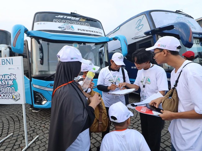 BNI memberangkatkan peserta mudik dengan tujuan Solo, Yogyakarta, Palembang, Purwokerto, Semarang, Malang, Surabaya, hingga Padang.