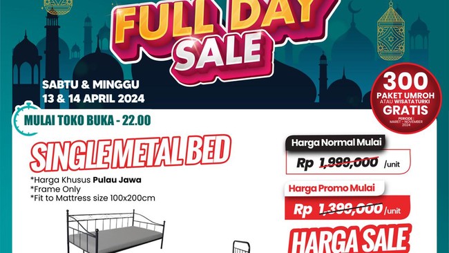Promo ini berlaku untuk produk-produk lainnya mulai dari sembako, produk rumah tangga, elektronik, kosmetik, hingga fesyen. Termasuk salah satunya untuk produk Single Metal Bed.