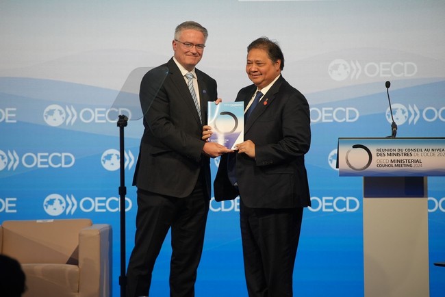 Menteri Koordinator Bidang Perekonomian Airlangga Hartarto mewakili Pemerintah Indonesia menerima Peta Jalan Aksesi Keanggotaan OECD Indonesia pada pembukaan Pertemuan Tingkat Menteri OECD. Prosesi ini menandakan proses lebih lanjut dari tahapan bergabungnya Indonesia di OECD.