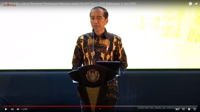 Hal itu dilakukan Jokowi dalam agenda Rakernas Asosiasi Pemerintah Kota Seluruh Indonesia (APEKSI) 2024, sambutan pembukanya disiarkan virtual lewat YouTube Sekretariat Presiden, Selasa (4/6/2024). Dalam acara itu wali kota di seluruh Indonesia berkumpul.