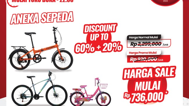 Pelanggan bisa mendapatkan diskon tambahan sehingga membawa pulang sepeda tersebut dengan harga promo mulai dari Rp 736.000.