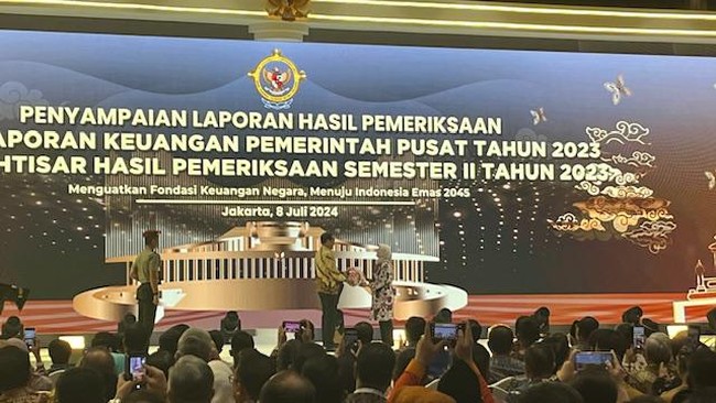 "Sudah sering saya sampaikan WTP bukan prestasi, tapi kewajiban kita semuanya. Kewajiban gunakan APBN secara baik, ini uang rakyat, uang negara, kita harus merasa setiap tahun ini diaudit dan diperiksa," tegas Jokowi dalam Penyampaian LHP dan LKP Pemerintah Pusat oleh BPK di JCC Senayan, Jakarta Pusat, Senin (8/7/2024).