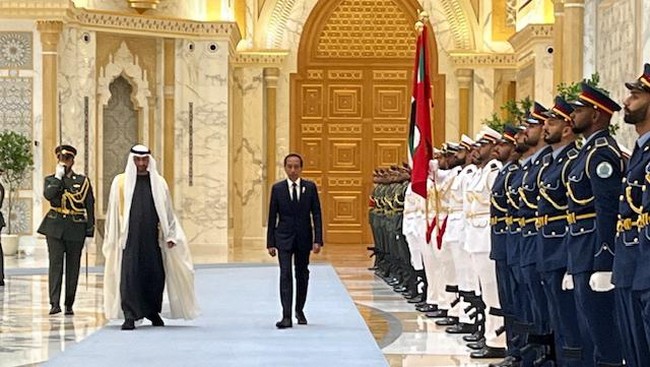 Presiden Joko Widodo (Jokowi) memamerkan keberhasilan Indonesia dalam membuat kapal perang untuk armada angkatan laut Uni Emirat Arab (UEA). Pencapaian ini disampaikan Jokowi saat bertemu dengan Presiden Uni Emirat Arab (UEA) Syeikh Mohammed bin Zayed Al Nahyan (MBZ) di Istana Qasr Al Watan, Abu Dhabi beberapa waktu lalu.
