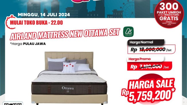 Pelanggan setia bisa mendapat produk Airland Mattress New Ottawa Set harga promo mulai dari Rp 7.199.000. Harga normal produk ini Rp 18 juta.