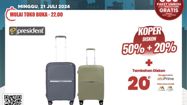 Khusus selama gelaran tersebut, ada diskon menarik untuk produk koper keluaran President dan Polo Classic. Produk keluaran dua merek ini didiskon 50% + 20%.