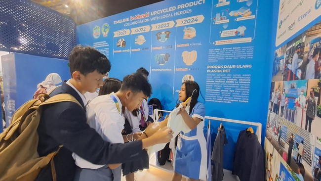 "Jadi kami meng-showcase produk-produk dari baju sepatu, semuanya terbuat dengan kandungan recycle PET," imbuhnya.