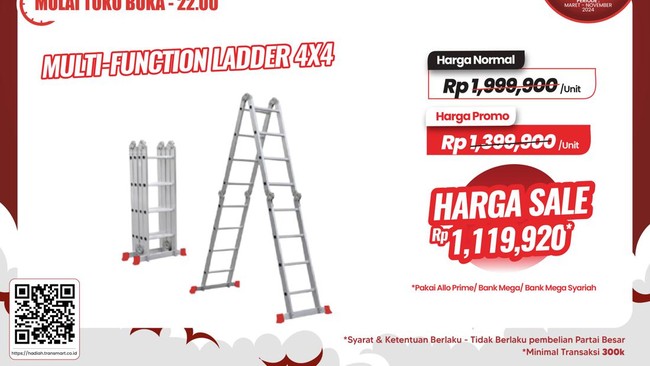 Salah satu produk diskon adalah tangga multifungsi. Khusus hari ini, harganya ditawarkan Rp 1.399.900/unit dari harga normal Rp 1.999.900/unit.