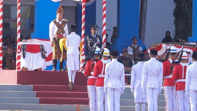 Menteri Kelautan dan Perikanan (KP), Sakti Wahyu Trenggono menjadi Inspektur Upacara peringatan Hari Ulang Tahun Kemerdekaan ke-79 Republik Indonesia di Kabupaten Sabu-Raijua, Nusa Tenggara Timur, hari ini.