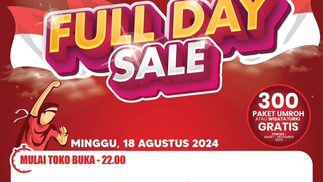 Transmart Full Day Sale berlangsung seharian. Program ini dimulai dari buka toko hingga pukul 22.00.
