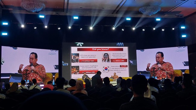 "Waktu itu BTS ada show di Korea. Dalam waktu 3 hari, itu menghasilkan Rp 12,4 triliun. Di Korea betapa memang di stadionnya besar sekali. Pada saat Blackpink ada di Indonesia waktu itu juga dalam waktu sehari bisa menghasilkan Rp 400 miliar. Ini betapa kekuatan seorang girlband ataupun boyband di Korea itu secara ekonomi," ujarnya.