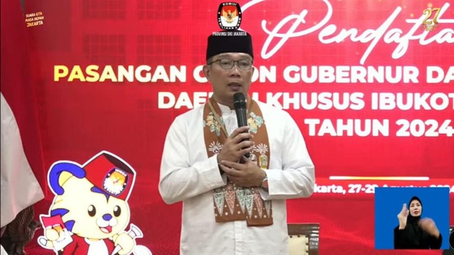 Ridwan Kamil (RK) dan Suswono resmi mendaftar sebagai calon gubernur dan calon wakil gubernur Jakarta. RK-Suswono menjadi pasangan kedua yang mendaftar ke KPU, setelah pasangan Pramono Anung-Rano Karno.