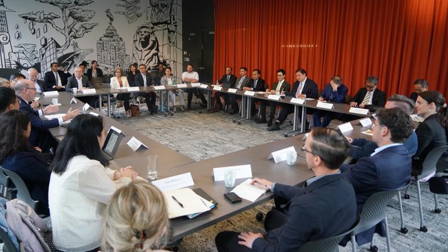 Menteri Koordinator Bidang Perekonomian Airlangga Hartarto menghadiri Business Roundtable yang diselenggarakan oleh Asia Pacific Foundation of Canada (APFC) di Oceanic Plaza, Vancouver, Kanada Selasa (3/9). Di sana ia bertemu dengan para pelaku usaha dan lembaga pendidikan negara bagian British Columbia.