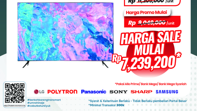 Ada diskon gede-gedean di Transmart Full Day Sale. Beli TV di Transmart Full Day Sale bisa jauh lebih murah.