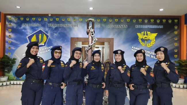 Barisan pegawai wanita di Kantor Wilayah Direktorat Jenderal Bea Cukai (DJBC) Khusus Kepulauan Riau berdiri tegap di atas kapal patroli. Mereka adalah penjaga perairan Karimun, perairan Batam dan Perairan Tanjung Pinang dari peredaran barang-barang ilegal yang akan masuk ke Indonesia.