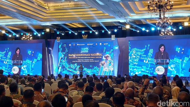 "Karena untuk bisa mencapai high income country (negara berpenghasilan tinggi), maka Indonesia harus bisa menghindarkan dari middle income trap," kata Sri Mulyani, dalam acara Rakornas Percepatan dan Perluasan Digitalisasi Daerah (P2DD) di Hotel Indonesia Kempinski, Jakarta Pusat, Senin (23/9/2024).