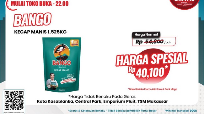 Harga spesial ini berlaku di seluruh gerai Transmart se-Indonesia, kecuali tiga gerai ini, antara lain gerai Transmart Kota Kasablanka, Central Park, dan TSM Makassar.