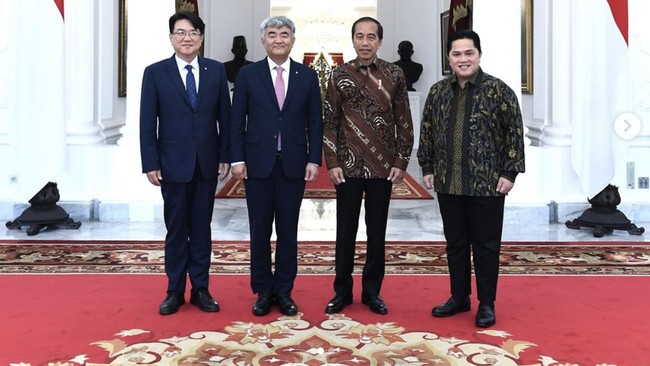 Presiden Joko Widodo (Jokowi) bertemu dengan Chairman Daewoo Engineering & Construction, Won Ju Jung. Pertemuan tersebut diungkap Menteri BUMN Erick Thohir melalui Instagramnya.