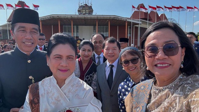 Sri Mulyani mengunggah 3 foto lewat Instagram resminya @smindrawati. Pertama dia memamerkan swafoto yang berisi dirinya bersama Jokowi dan Iriana Jokowi, Menkominfo Kabinet Indonesia Maju Budi Arie Setiadi, Menlu Kabinet Indonesia Maju Retno Marsudi, dan Menteri PPN/Kepala Bappenas Kabinet Indonesia Maju Suharso Monoarfa.