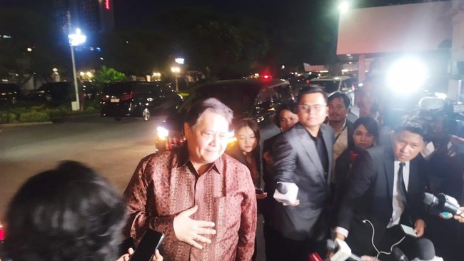 Airlangga Hartarto merapat ke Istana Kepresidenan malam ini. Rencananya setelah acara gala dinner, Presiden Prabowo Subianto akan mengumumkan nama-nama menteri di kabinetnya.