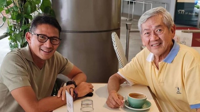 Eks Menteri Pariwisata dan Ekonomi Kreatif (Menparekraf) Sandiaga Uno membagikan momen bertemu dengan pengusaha ternama Edwin Soeryadjaya. Pertemuan itu berlangsung di Singapura.
