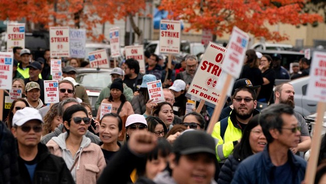 Sebagian besar dari 44.000 karyawan ter-PHK itu berasal dari pekerja Boeing yang sudah melakukan aksi mogok kerja selama lebih dari sebulan ini.
