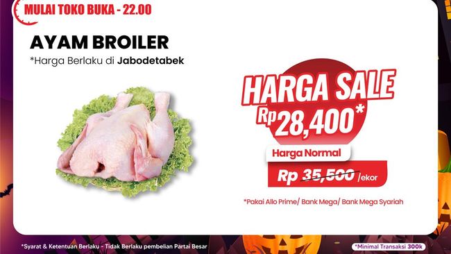 Produk yang mendapat diskon besar-besaran salah satunya berlaku untuk harga ayam broiler, mulai dari buka sampai tutup toko. Untuk di wilayah Jabodetabek, ayam broiler harganya jadi Rp 28.400 dari harga semula seharga Rp 35.500 per ekor.