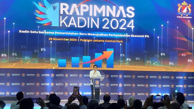 "Bapak Presiden memberikan instruksi yang jelas, bahwa Kadin harus satu dan Kadin harus solid!," kata Arsjad dalam acara Rapimnas Kadin 2024 di Pullman Hotel Central Park, Jakarta, Jumat (29/11/2024).