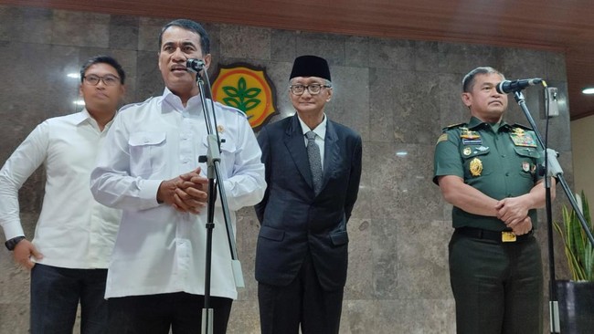 "Kami sudah membentuk brigade swasembada pangan di 12 provinsi seluruh Indonesia, 85 kabupaten. Ini tim bersama, TNI, untuk padi. Cetak sawah, oplah, itu bersama TNI, (Kementerian) PU, Kementerian Pertanian. Untuk hortikultura, bersama Kementerian Desa, Kepolisian, dengan Kementerian Pertanian. Jadi terbagi dua," kata Amran di Kantor Kementerian Pertanian, Senin (18/11/2024).
