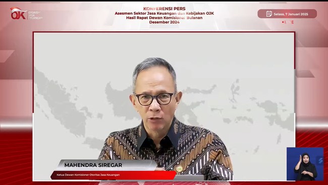 Ketua Dewan Komisioner Otoritas Jasa Keuangan (OJK) Mahendra Siregar melaporkan, hingga Desember 2024 sektor jasa keuangan terjaga stabil di tengah dinamika perekonomian global dan domestik. Hal ini berdasarkan pada hasil Rapat Dewan Komisioner (RDK) OJK Desember 2024.