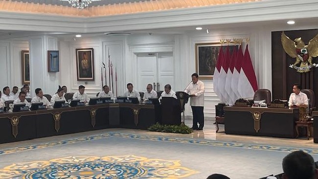 "Tentunya saya sampaikan apresiasi kepada menteri keuangan dan semua timnya yang susun APBN dengan layak dan cermat, bekerja keras karena saya terus menerus monitor, terus menerus menuntut penghematan efisiensi," sebut Prabowo dalam Sidang Kabinet di Kantor Presiden, Kawasan Istana Kepresidenan, Jakarta Pusat, Rabu (22/1/2025).
