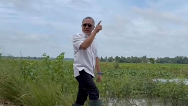 Melalui unggahan di akun Instagram-nya, @zul.hasan, terlihat Zulhas mengenakan baju putih dan sepatu boots hitam ditemani oleh Bupati Lampung Selatan terpilih Radityo Egi.