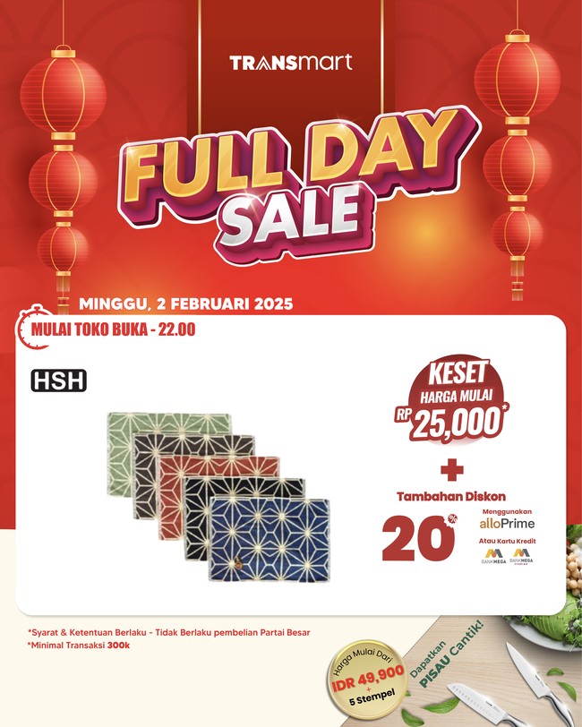 Gebyar diskon gede-gedean bertajuk Transmart Full Day Sale hadir lagi khusus hari ini. Ada banyak promo menarik untuk berbagai produk kebutuhan sehari-hari, salah satunya produk keset.