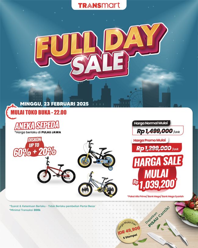 Dengan bertransaksi menggunakan kartu kredit Bank Mega, kartu kredit Bank Mega Syariah, atau Allo Bank selama Transmart Full Day Sale berlangsung, produk ini dapat dibawa pulang dengan harga mulai dari Rp 1.039.200.