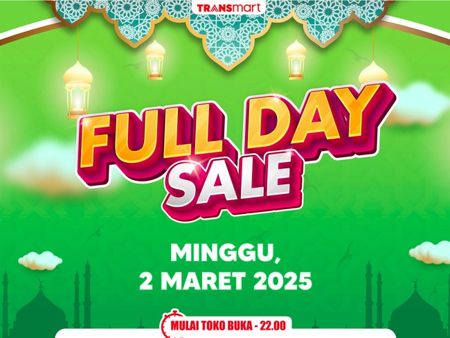 Transmart Full Day Sale berlangsung sejak toko buka hingga berakhir jam 10 malam. Program Transmart Full Day Sale memberikan penawaran diskon hingga 50%.