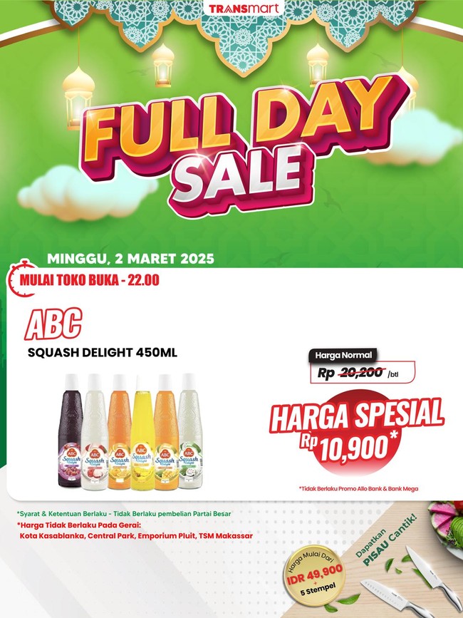 Transmart Full Day Sale datang lagi. Transmart Full Day Sale berlangsung dari toko buka hingga jam 10 malam, Minggu (2/3/2025).