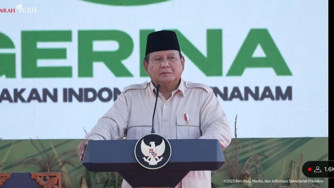 Hal ini diungkapkan Prabowo di depan para petani dalam acara tanam raya bersama Kecamatan Pemulatan, Kabupaten Ogan Ilir, Sumatera Selatan, Rabu (23/4/2025).