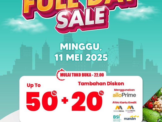 Ada juga Diskon tambahan 20% diberikan kepada pelanggan apabila bertransaksi menggunakan Allo Prime, Allo Paylater, kartu kredit Bank Mega, atau kartu kredit Bank Mega Syariah.