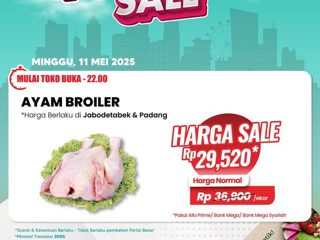 Sementara di Makassar, harga ayam broiler di Transmart punya harga spesial menjadi Rp 28.900 per ekor (tidak berlaku promo Allo Bank dan Bank Mega).