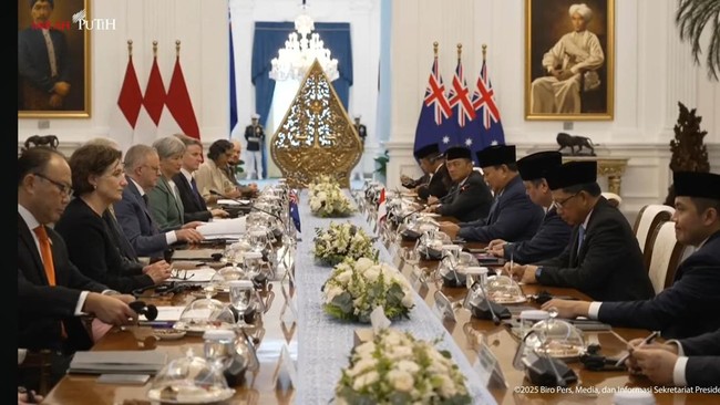 "Kita juga perkuat kerja sama ekonomi, khususnya peningkatan perdagangan dan investasi. Kami undang pihak Australia untuk partisipasi ke ekonomi kita," ungkap Prabowo dalam pernyataan pers bersama di Istana Merdeka, Jakarta Pusat, Kamis (15/5/2025).