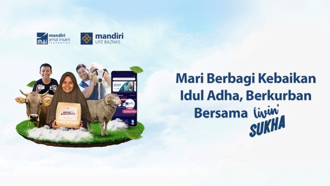 Kurban digital ini hadir sebagai jawaban buat kamu yang hidupnya serba cepat dan dinamis. Lewat fitur Sukha di aplikasi Livin' by Mandiri, pilih lembaga Kurban MAI, lalu pilih jenis hewan kurban yang diinginkan.